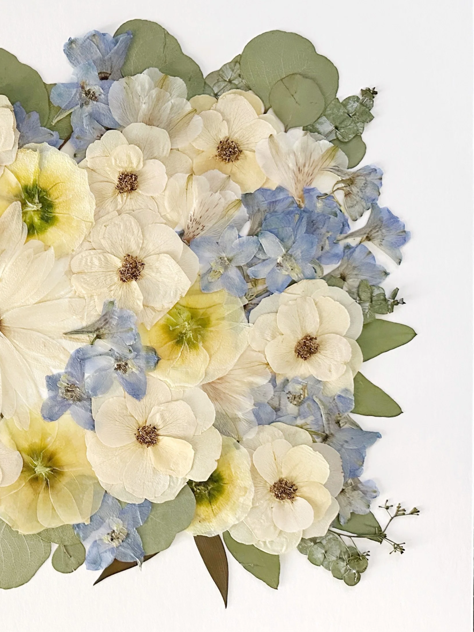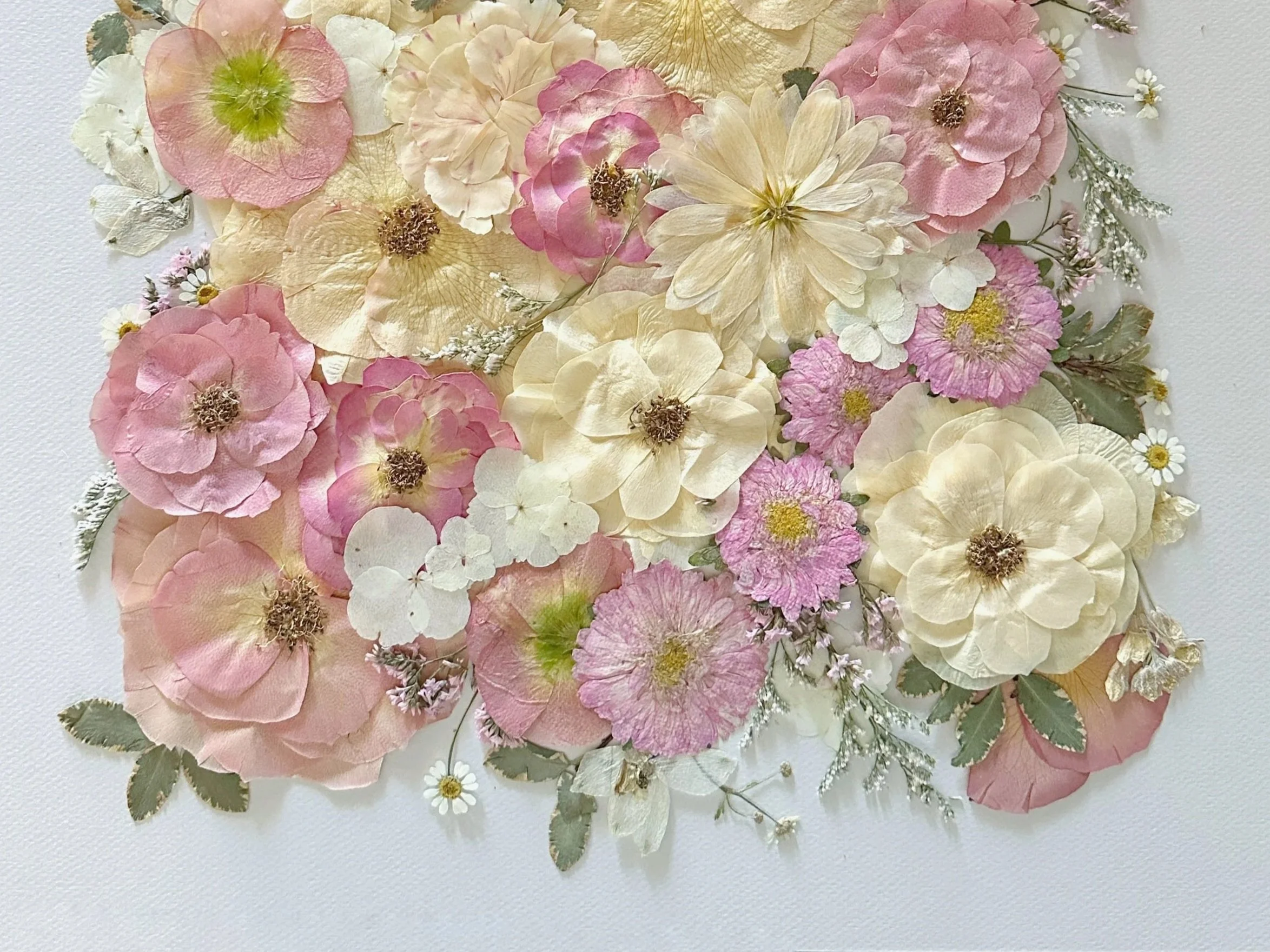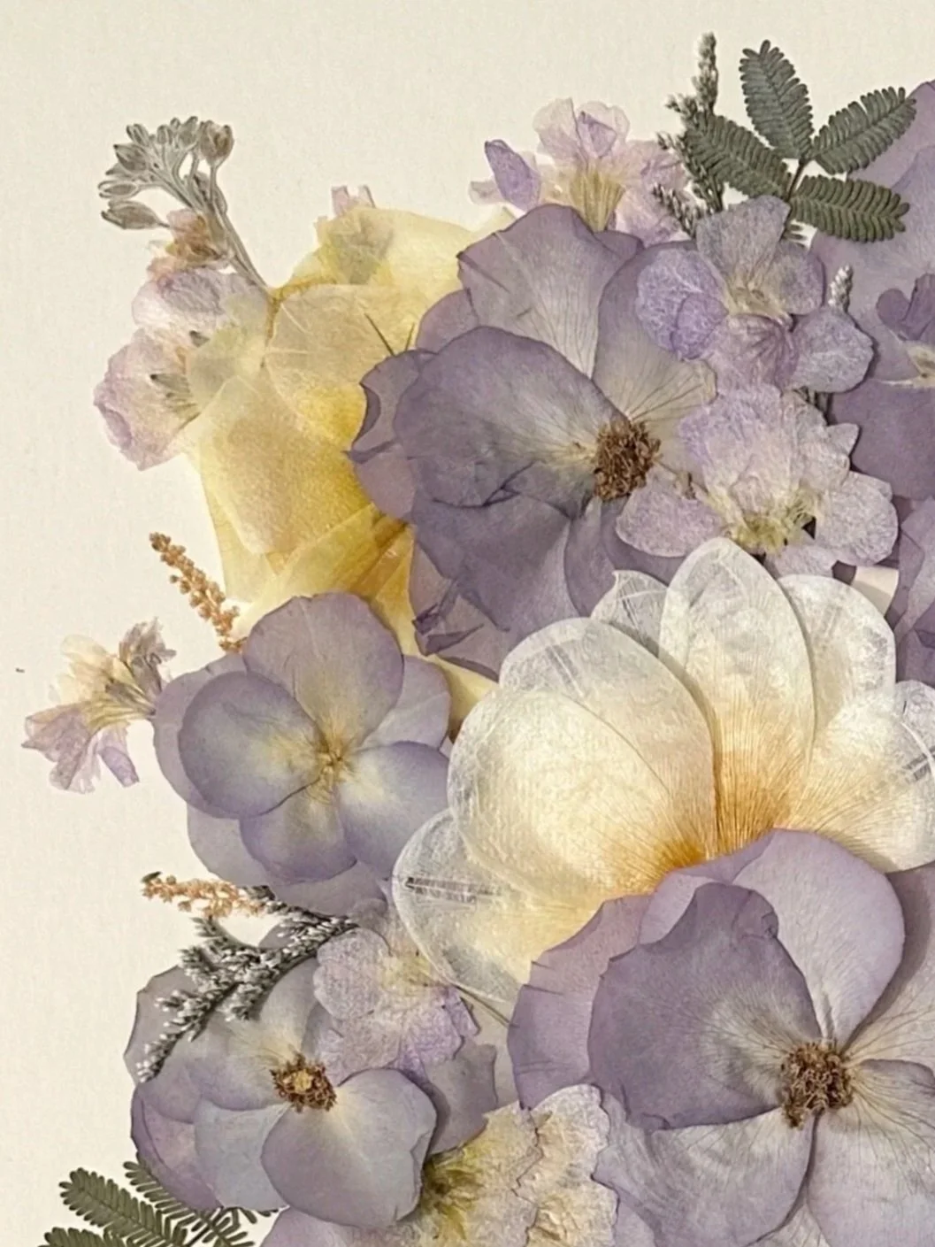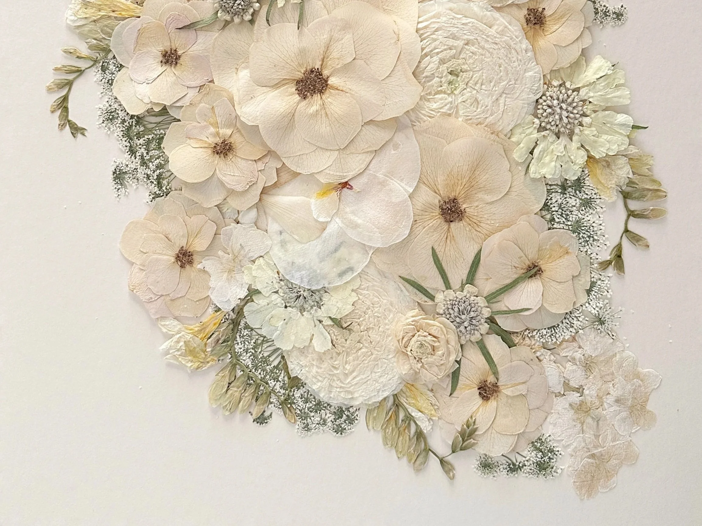 Our signature service, this includes pressing the blooms in your wedding bouquet and preserving them in a frame for you to enjoy for always. There are multiple frame and backing colors available, to choose one that suits the style you would like to have in your home. The examples shown in the gallery below are intentionally cropped to show only part of the overall design … because we believe that leaving a bit of curiosity as to what your framed piece could look like as a unique piece of art brings a little more joy to the entire process. Your flowers, your story, and your framed piece will unfold in it’s own beautiful way, and there is something lovely about letting it be discovered.