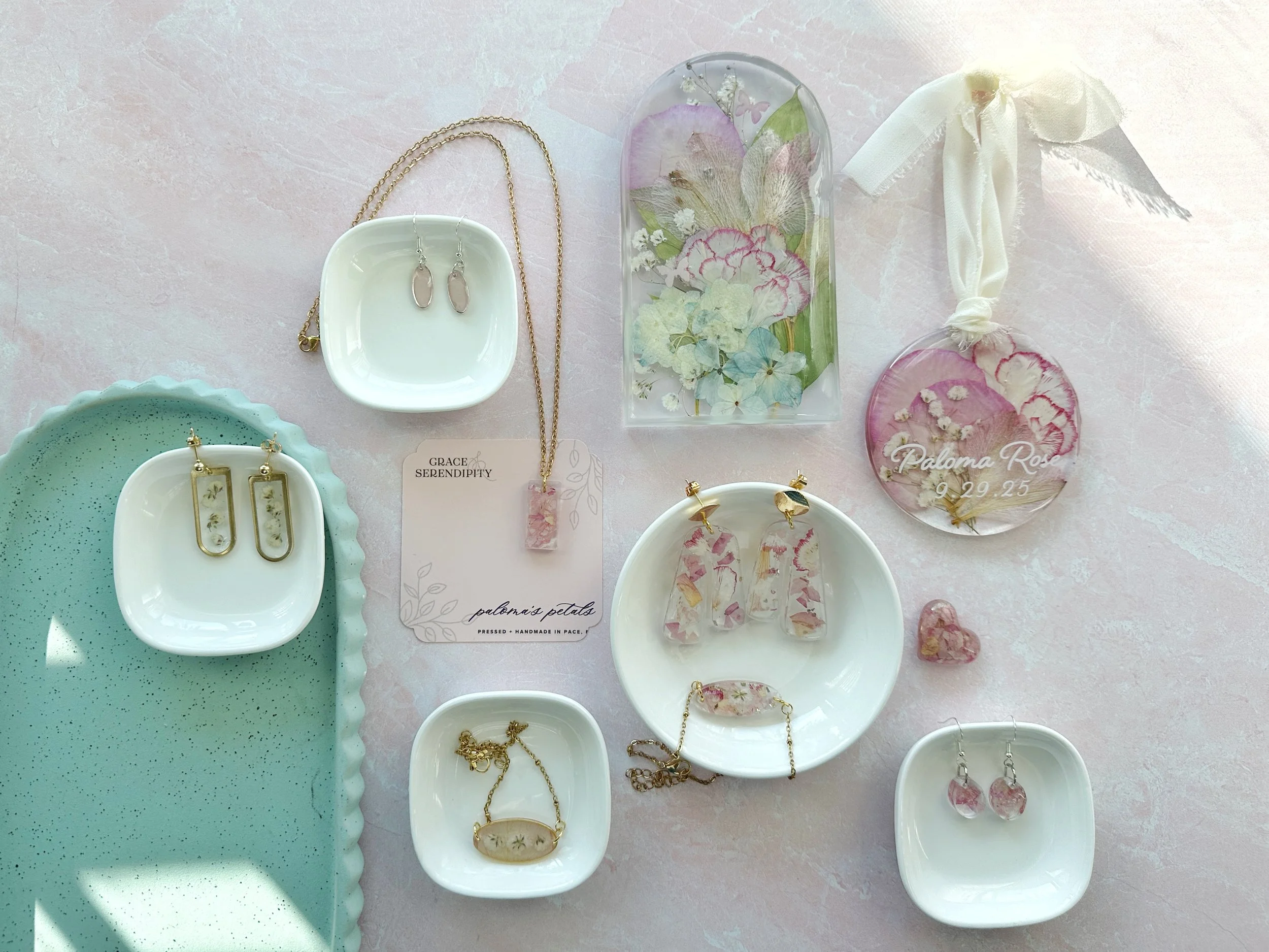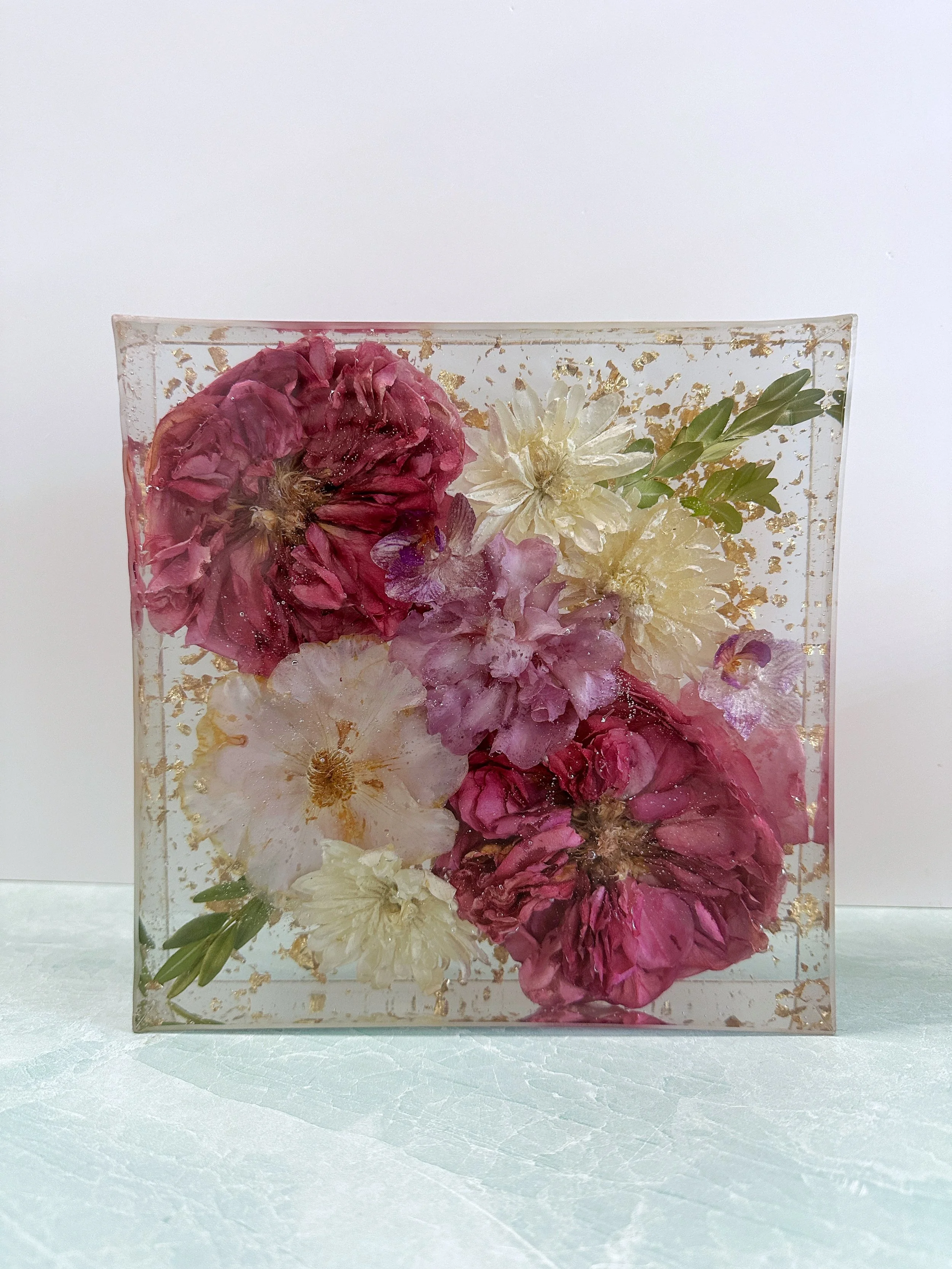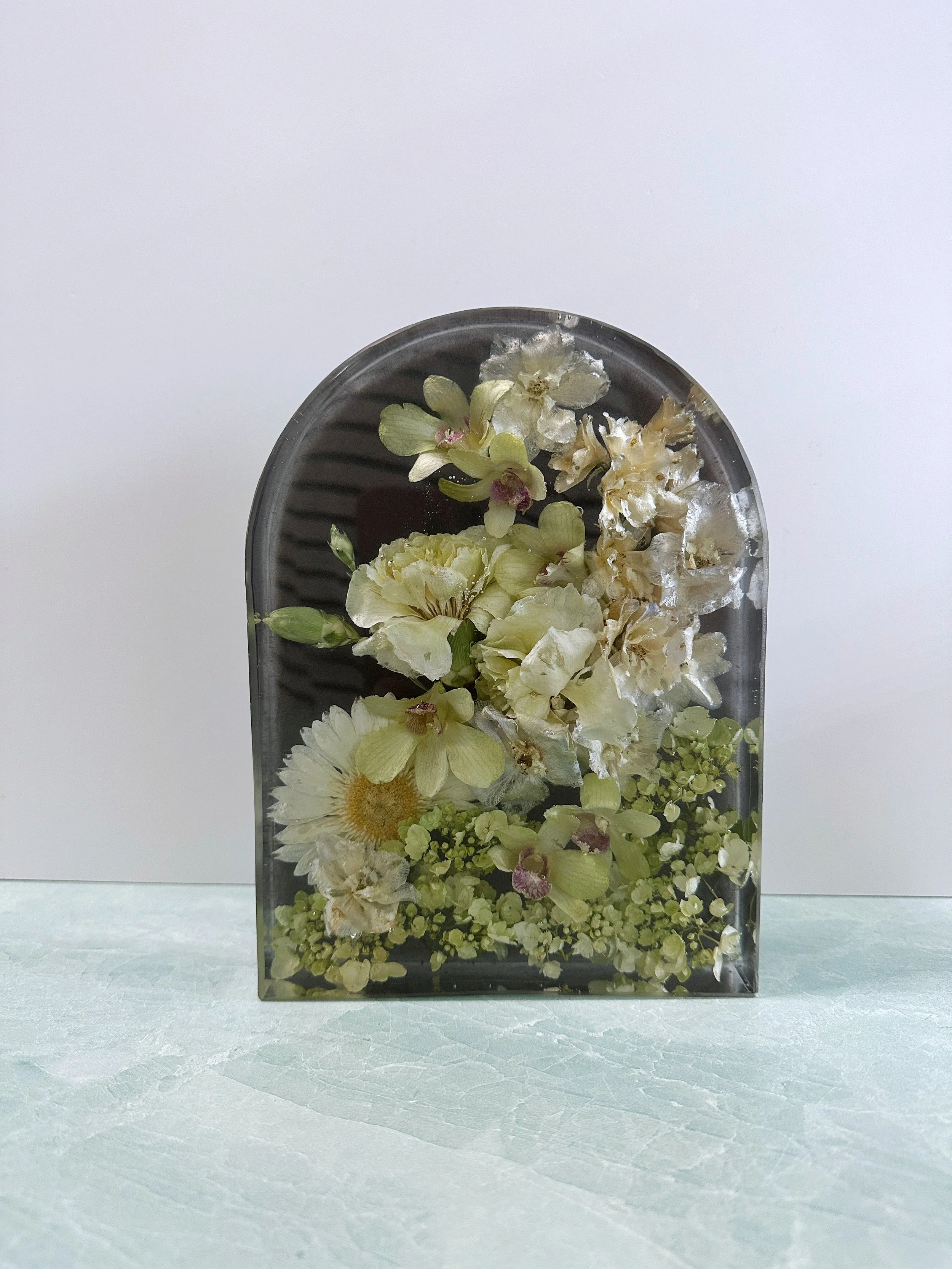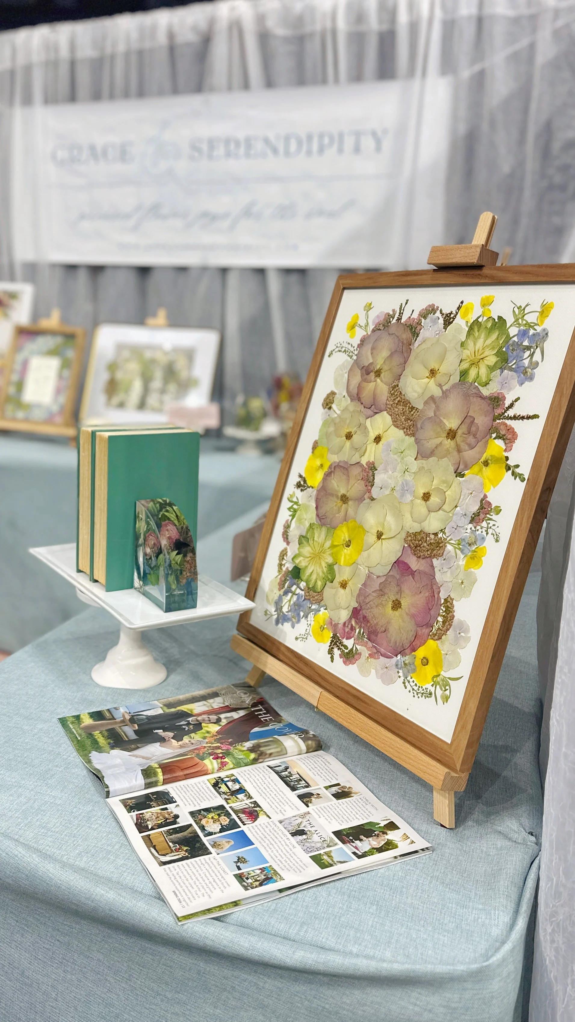 Our signature service, this includes pressing the blooms in your wedding bouquet and preserving them in a frame for you to enjoy for always. There are multiple frame and backing colors available, to choose one that suits the style you would like to have in your home. The examples shown in the gallery below are intentionally cropped to show only part of the overall design … because we believe that leaving a bit of curiosity as to what your framed piece could look like as a unique piece of art brings a little more joy to the entire process. Your flowers, your story, and your framed piece will unfold in it’s own beautiful way, and there is something lovely about letting it be discovered.